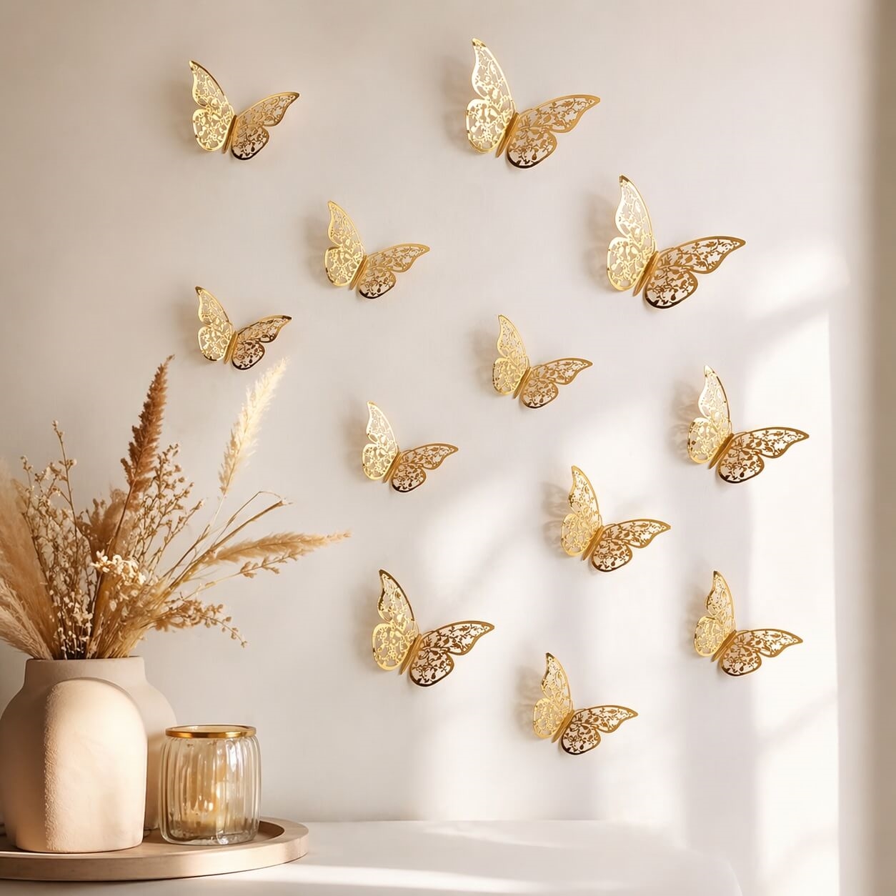 Elegant vægdekoration med 3D sommerfugle i guld