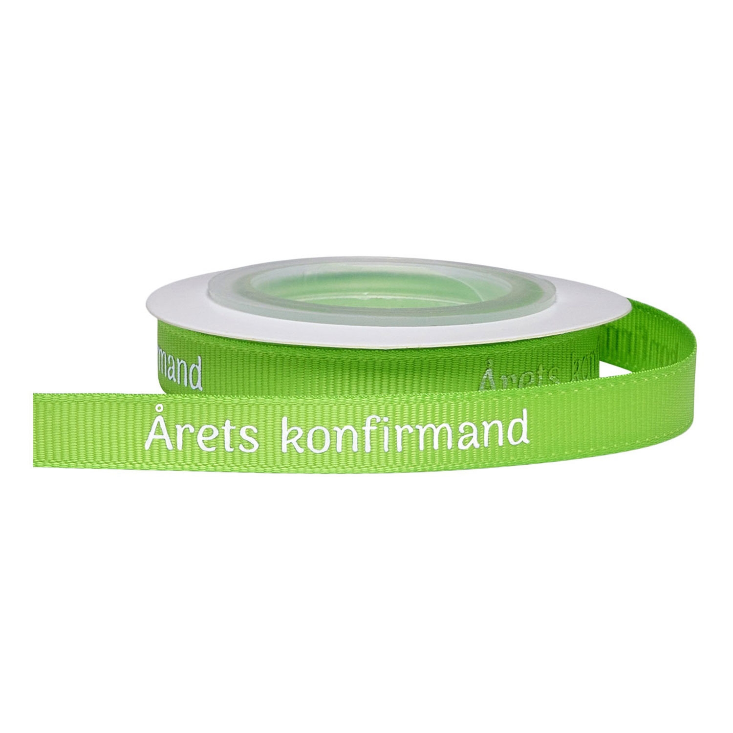 Båndets limegrønne farve signalerer forår, håb og glæde. Og den sølvfarvede tekst – "Årets konfirmand" – lader ingen være i tvivl om, at her fejres en stolt konfirmand. Og den skarpe kontrast mellem limegrøn og sølv vil pifte enhver udsmykning op. Bestil båndet i dag, og skab en sammenhæng i udsmykningen.