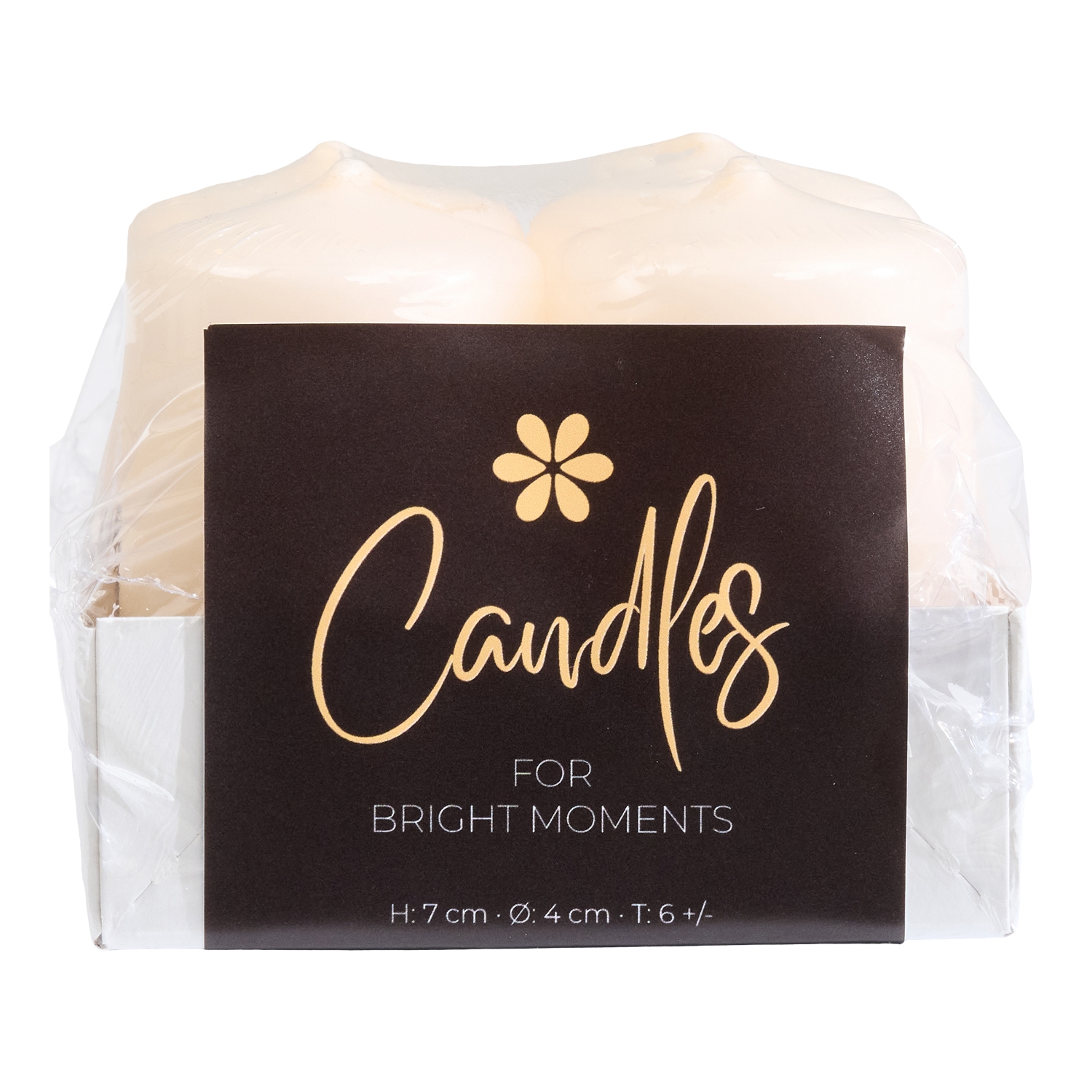 Bloklys creme 4cm x 7cm, 4 stk. stearinlysBloklys creme 4cm x 7cm, 4 stk. borddækning
