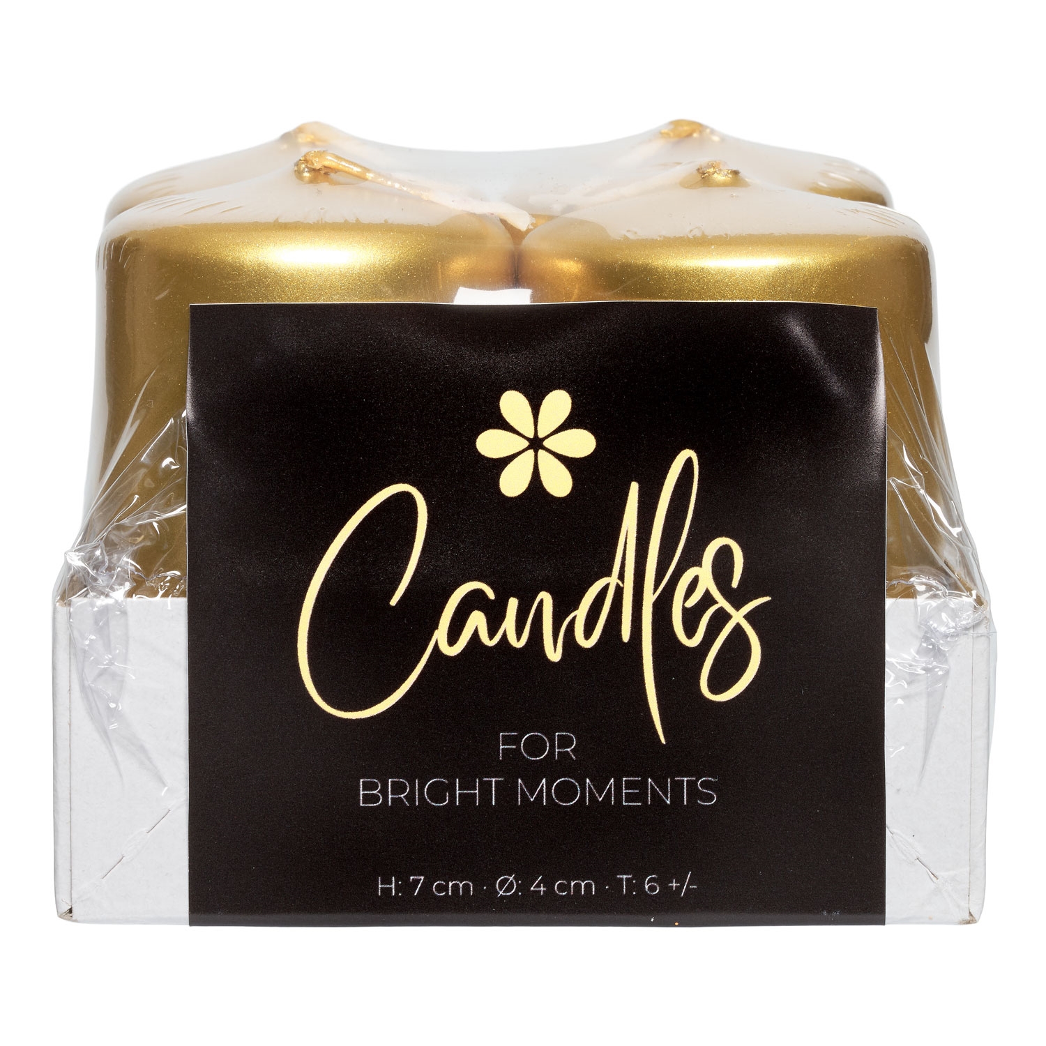 Bloklys guld 4cm x 7cm, 4 stk. stearinlysBloklys guld 4cm x 7cm, 4 stk. borddækning