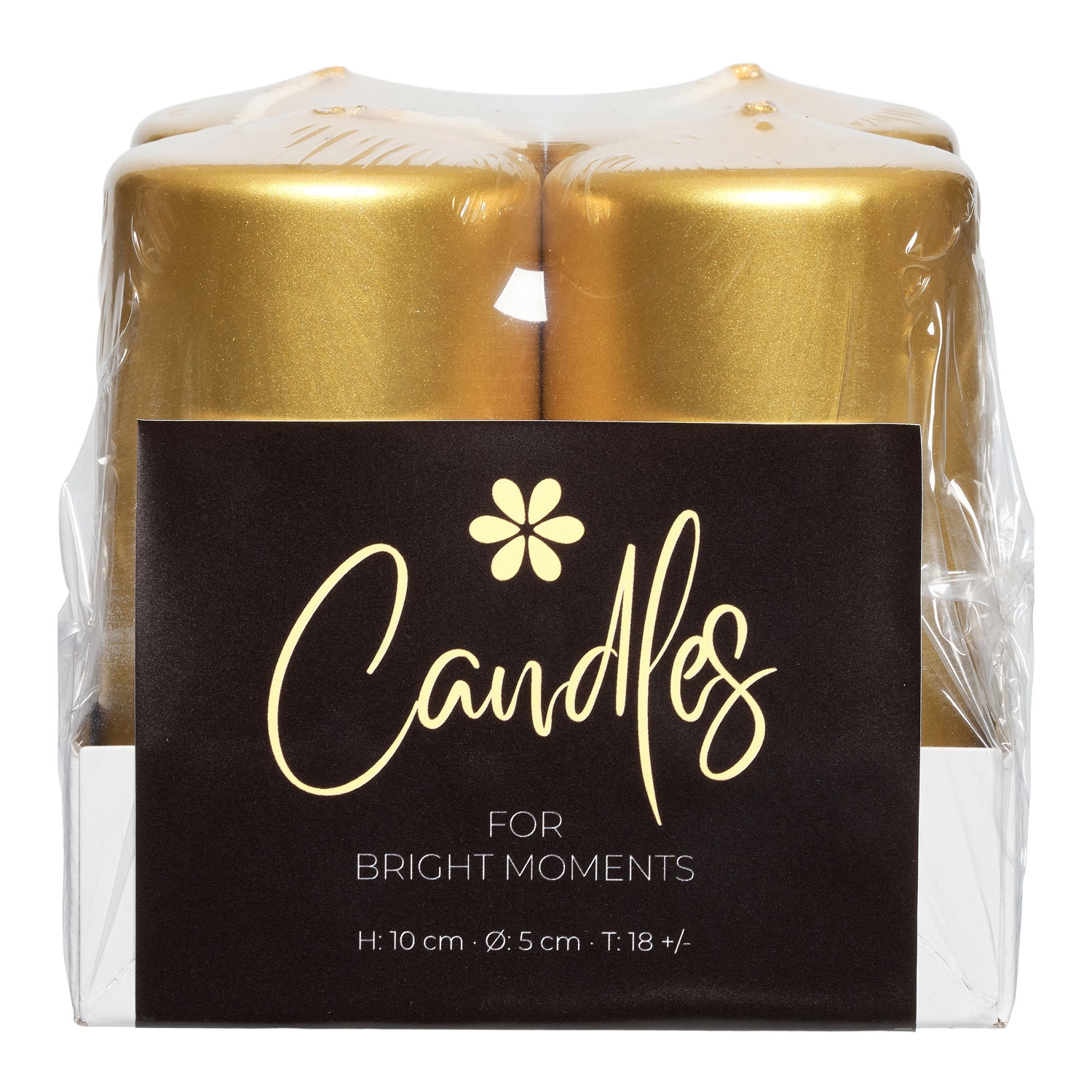 Bloklys guld 5cm x 10cm, 4 stk. stearinlysBloklys guld 5cm x 10cm, 4 stk. borddækning