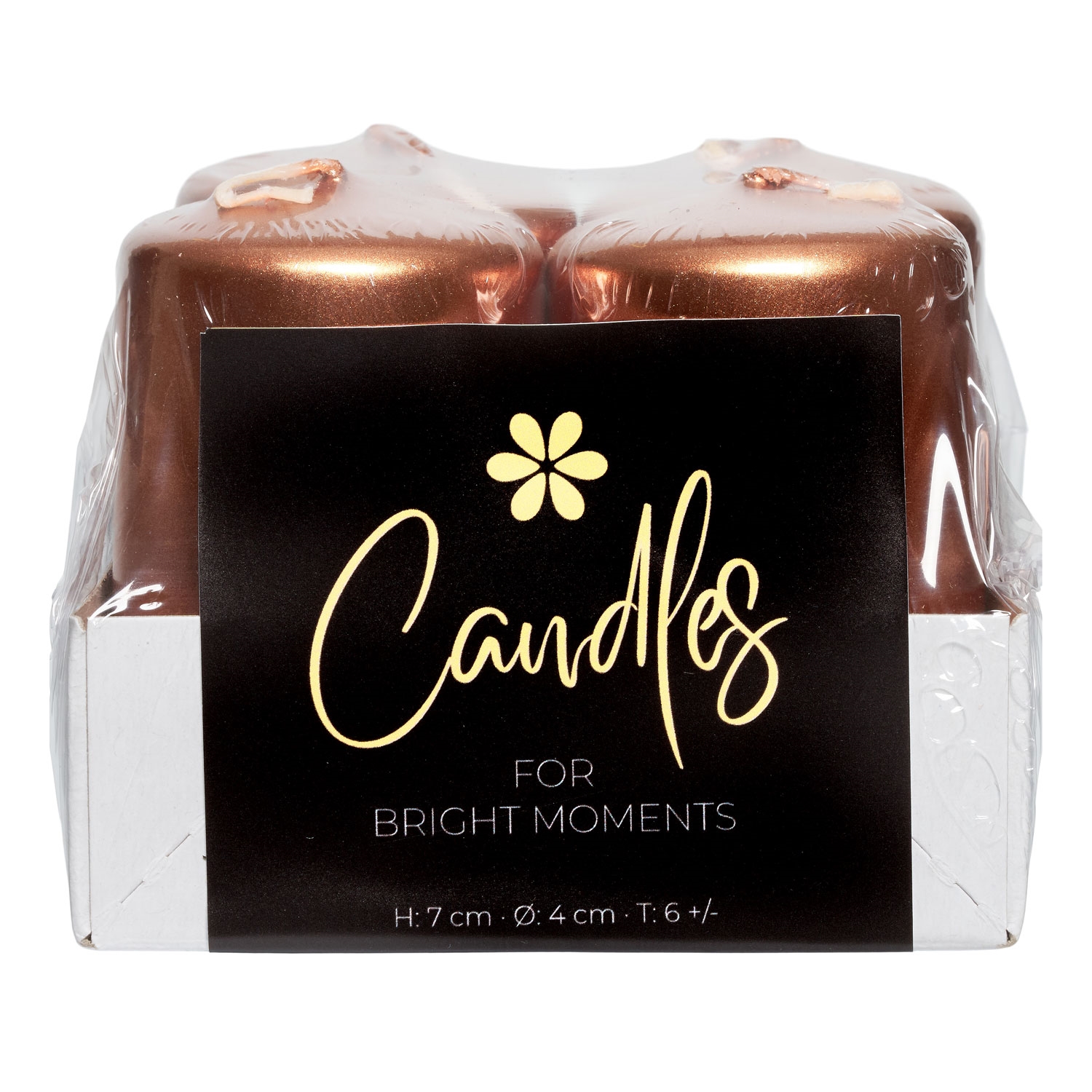 Bloklys kobber 4cm x 7cm, 4 stk. stearinlysBloklys kobber 4cm x 7cm, 4 stk. borddækning