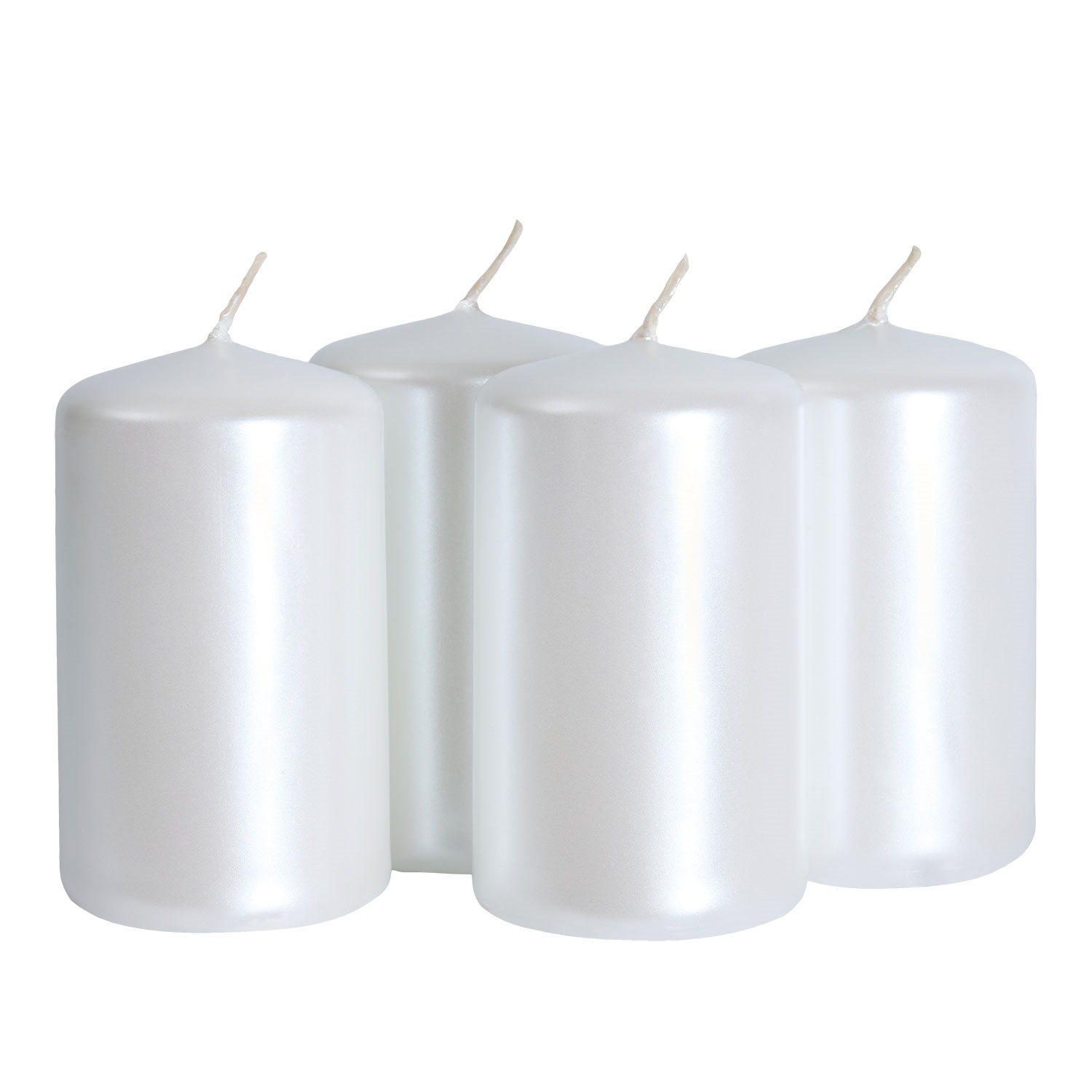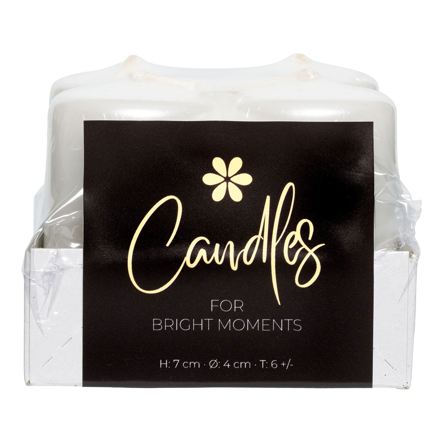 Bloklys perlehvid 4cm x 7cm, 4 stk. stearinlysBloklys perlehvid 4cm x 7cm, 4 stk. borddækning