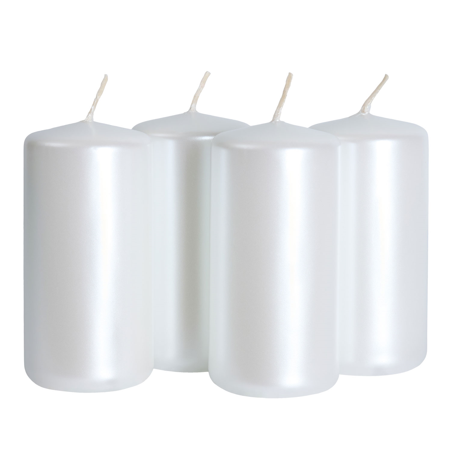Bloklys perlehvid 5cm x 10cm, 4 stk. stearinlysBloklys perlehvid 5cm x 10cm, 4 stk. borddækning