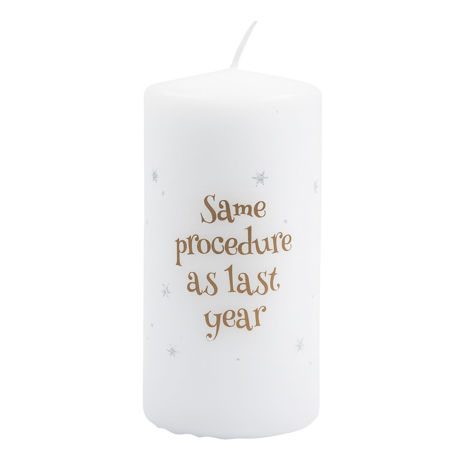 Bloklys Same Procedure As.../90 års fødselsdag hvid/guld 11cm nytårspynt