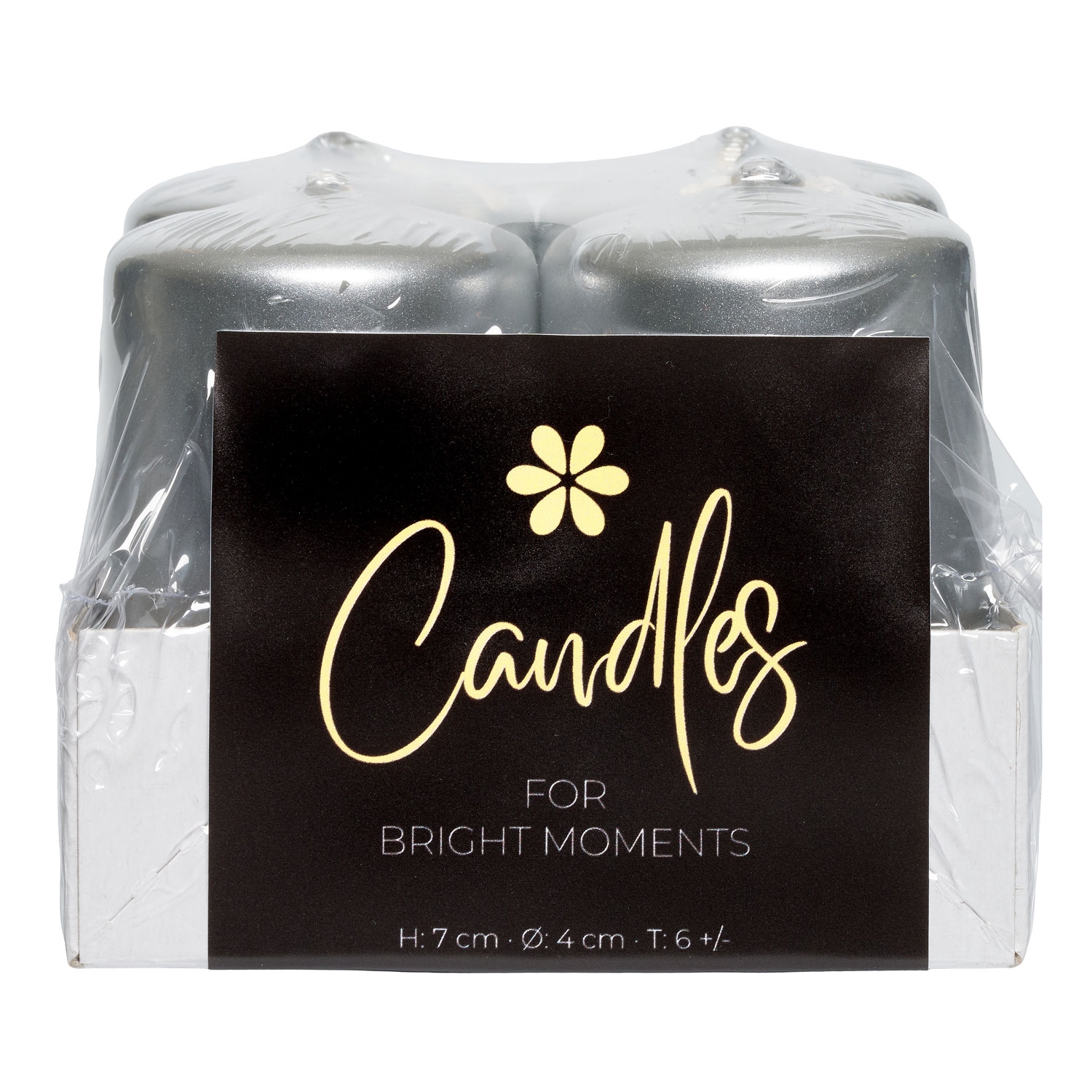 Bloklys sølv 4cm x 7cm, 4 stk. stearinlysBloklys sølv 4cm x 7cm, 4 stk. borddækning