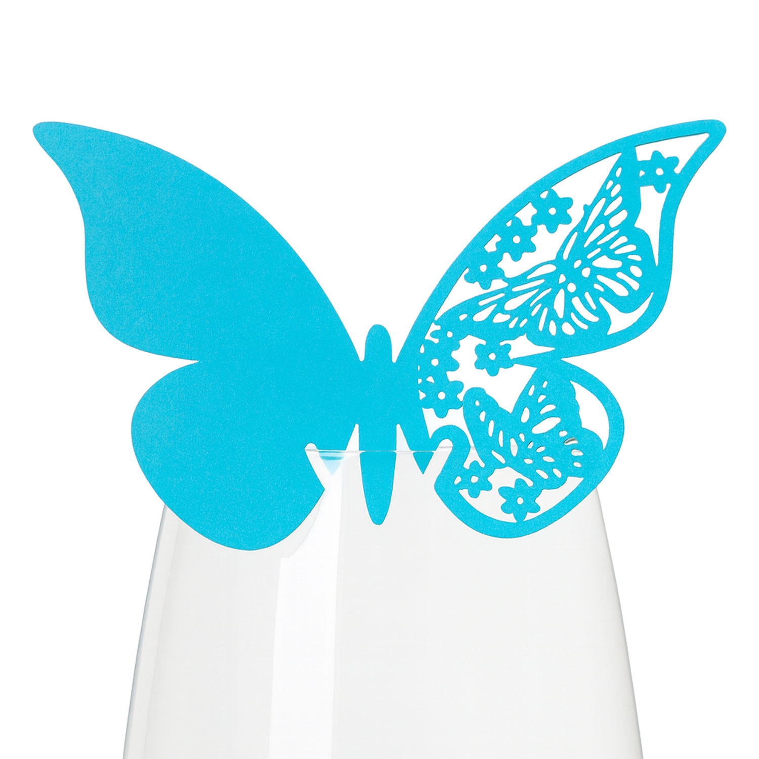 Giv dit festbord et magisk og eventyrligt look, og vis dine gæster på plads med disse aquablå sommerfugle. Du får 10 stk. i en pakke.