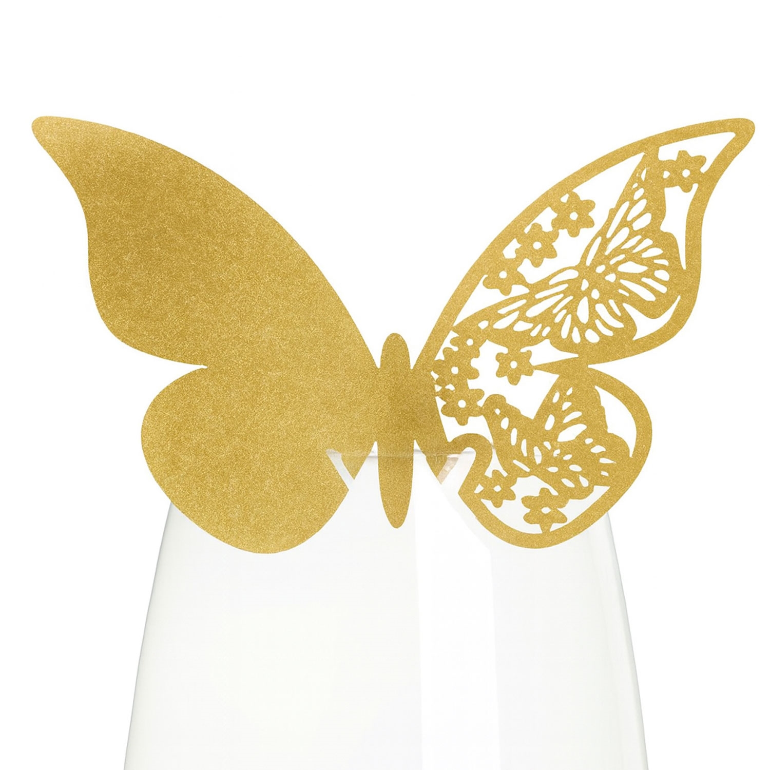 Forkæl dine gæster med sommerfugle bordkort i guld perlemor. Bordkortene er det perfekte supplement til din borddækning og skaber en rød tråd til enhver begivenhed.