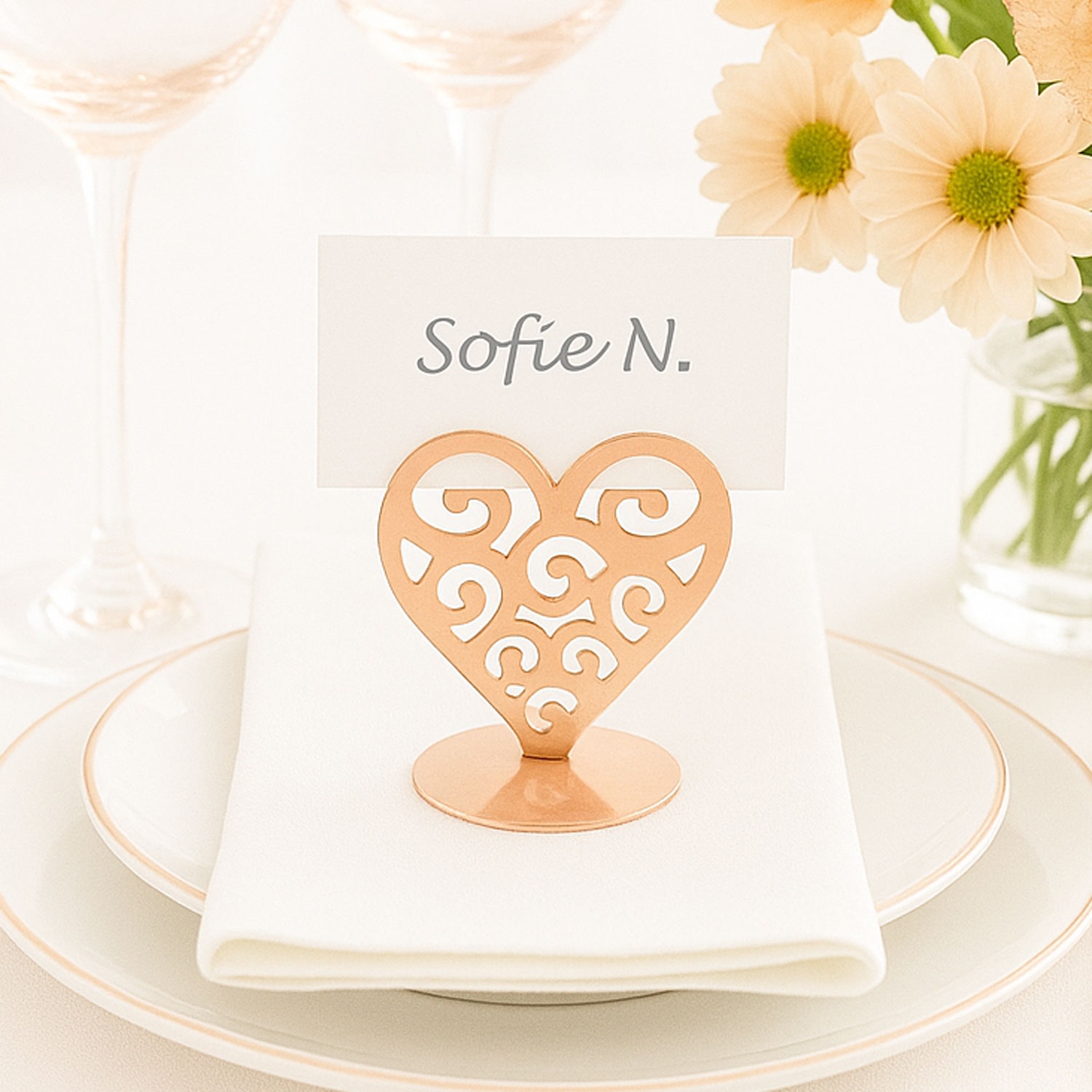 Bordkortholder Hjerte kobber kobberbryllupBordkortholder Hjerte kobber borddækningBordkortholder Hjerte kobber bordpynt