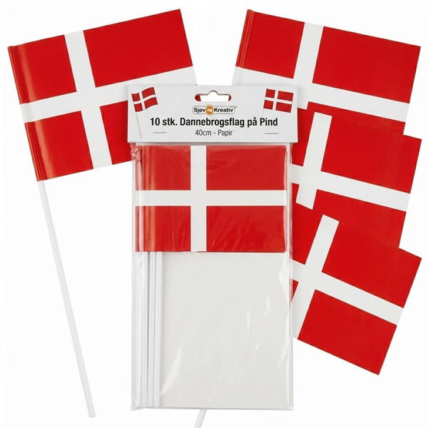 Skab ægte dansk feststemning med klassiske Dannebrogsflag på pind.