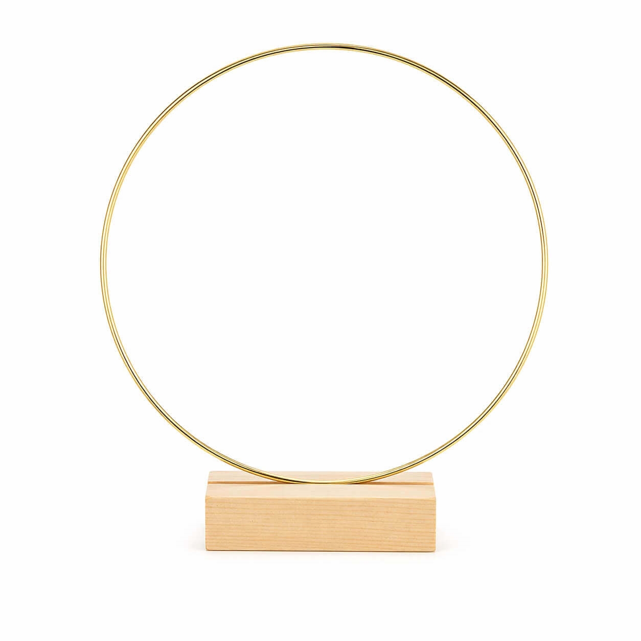 En dekorationsring med fod er en stilren metalring monteret på en stabil træbase, som gør den ideel til borddekoration. I modsætning til klassiske ringe til ophæng kan denne metal ring med træfod stå selv og bruges direkte som centerpiece.