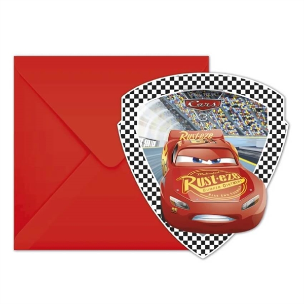 Disney Cars indbydelser med kuvert – 6 stk invitationer til børnefødselsdag