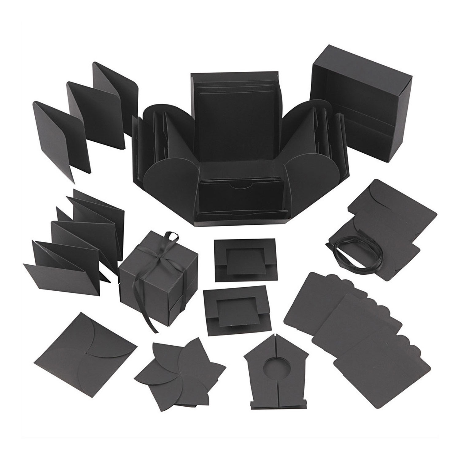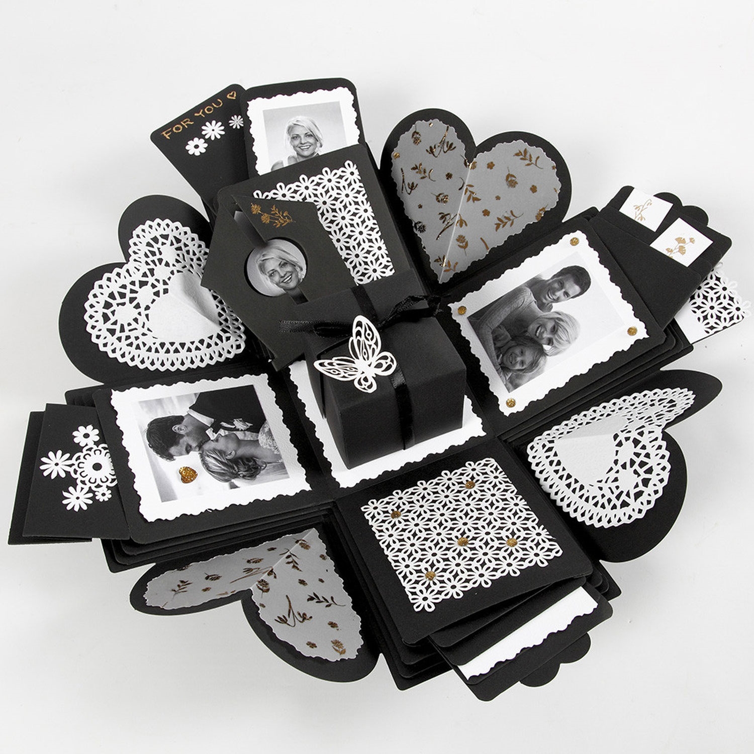 Eksplosionsæske sort DIY 12cm x 12cm personlig gaveEksplosionsæske sort DIY 12cm x 12cm gaveæskeEksplosionsæske sort DIY 12cm x 12cm kreativ gave