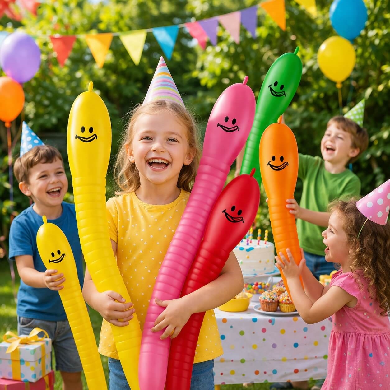 Disse figur balloner skaber øjeblikkelig feststemning og giver børnene noget sjovt at lege med.