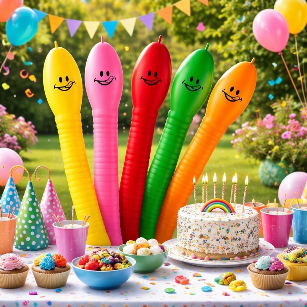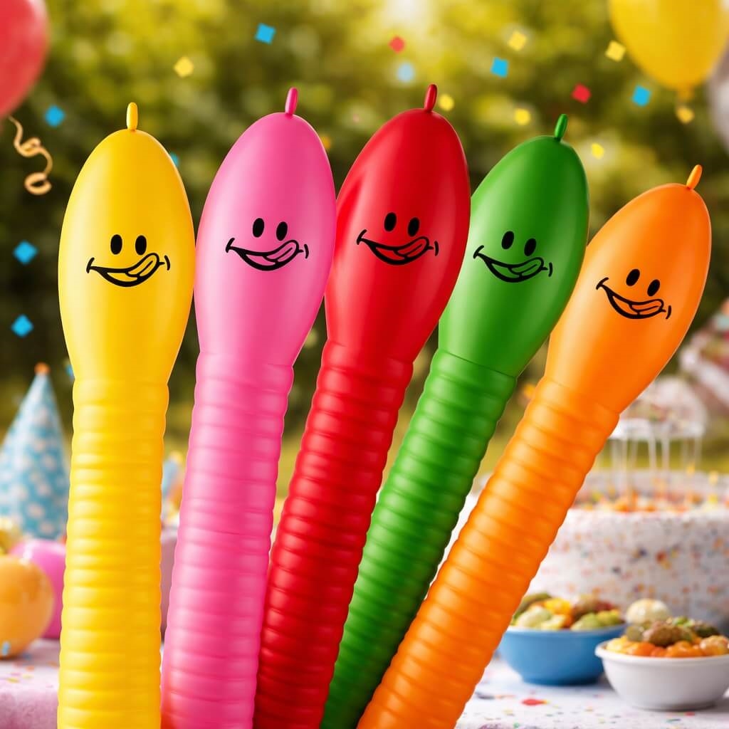 Det er lange latexballoner formet som larver, som bruges til pynt og leg.