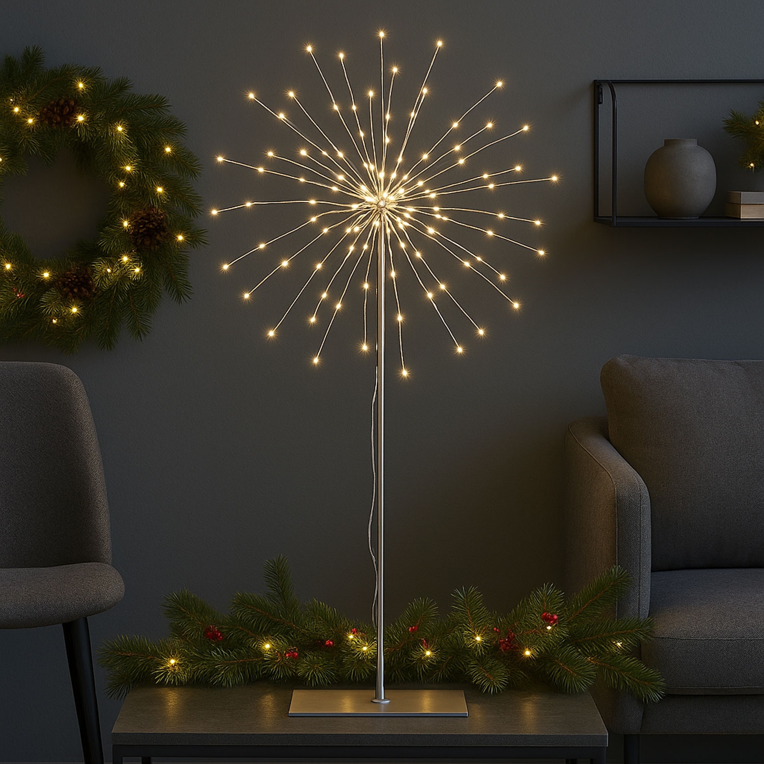 Firework Julestjerne på fod sølv 50cm, 120 LED-lys julelysFirework Julestjerne på fod sølv 50cm, 120 LED-lys julebelysningFirework Julestjerne på fod sølv 50cm, 120 LED-lys julepynt