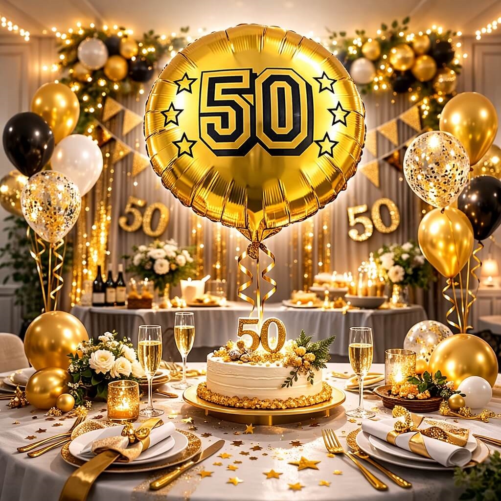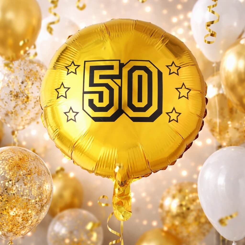 Skab en uforglemmelig fejring af de 50 år med en stilfuld ballon, der straks signalerer fest og fejring.