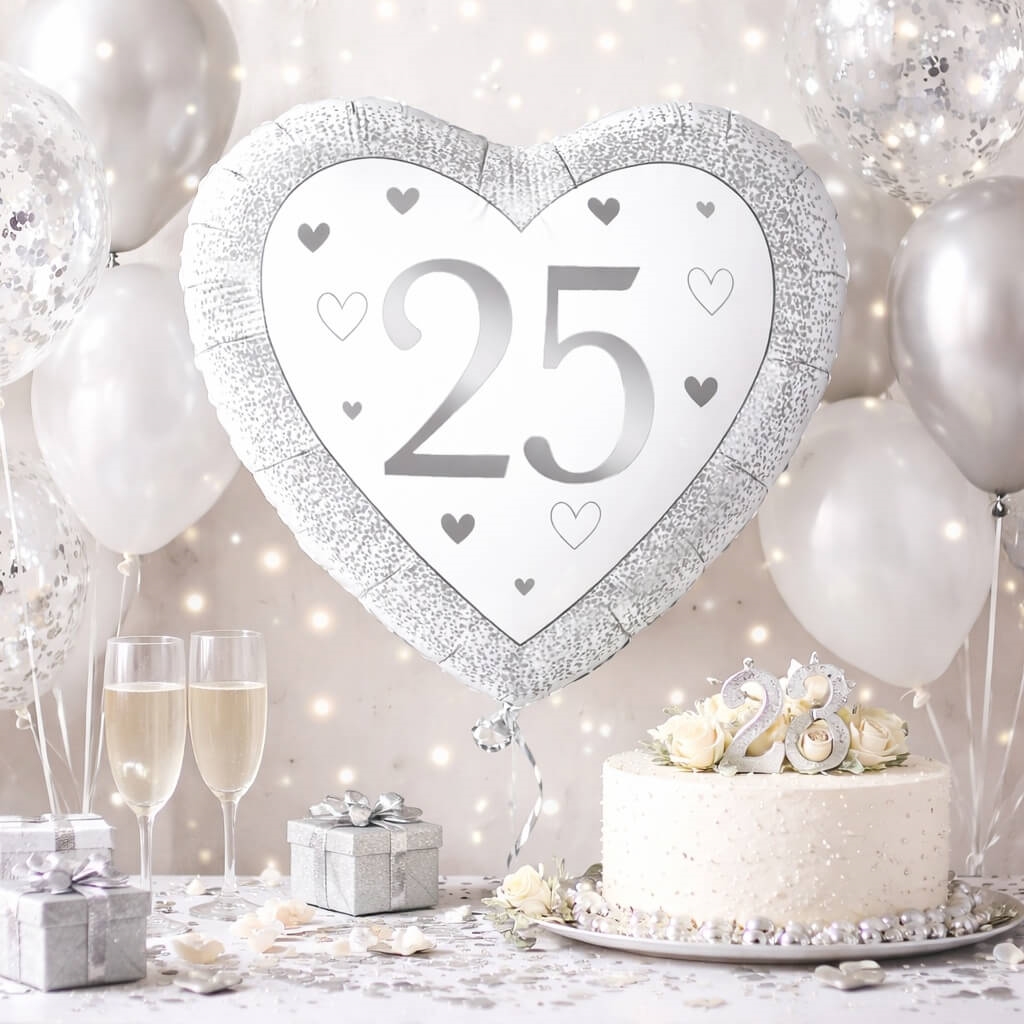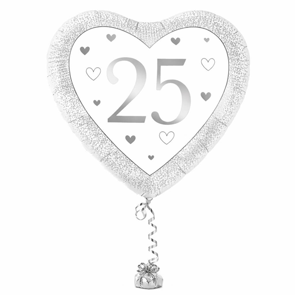 Uanset om du fejrer en 25-års fødselsdag, sølvbryllup eller jubilæum, er denne hjerteballon en dekorativ og stemningsskabende detalje, der fuldender festpynten.