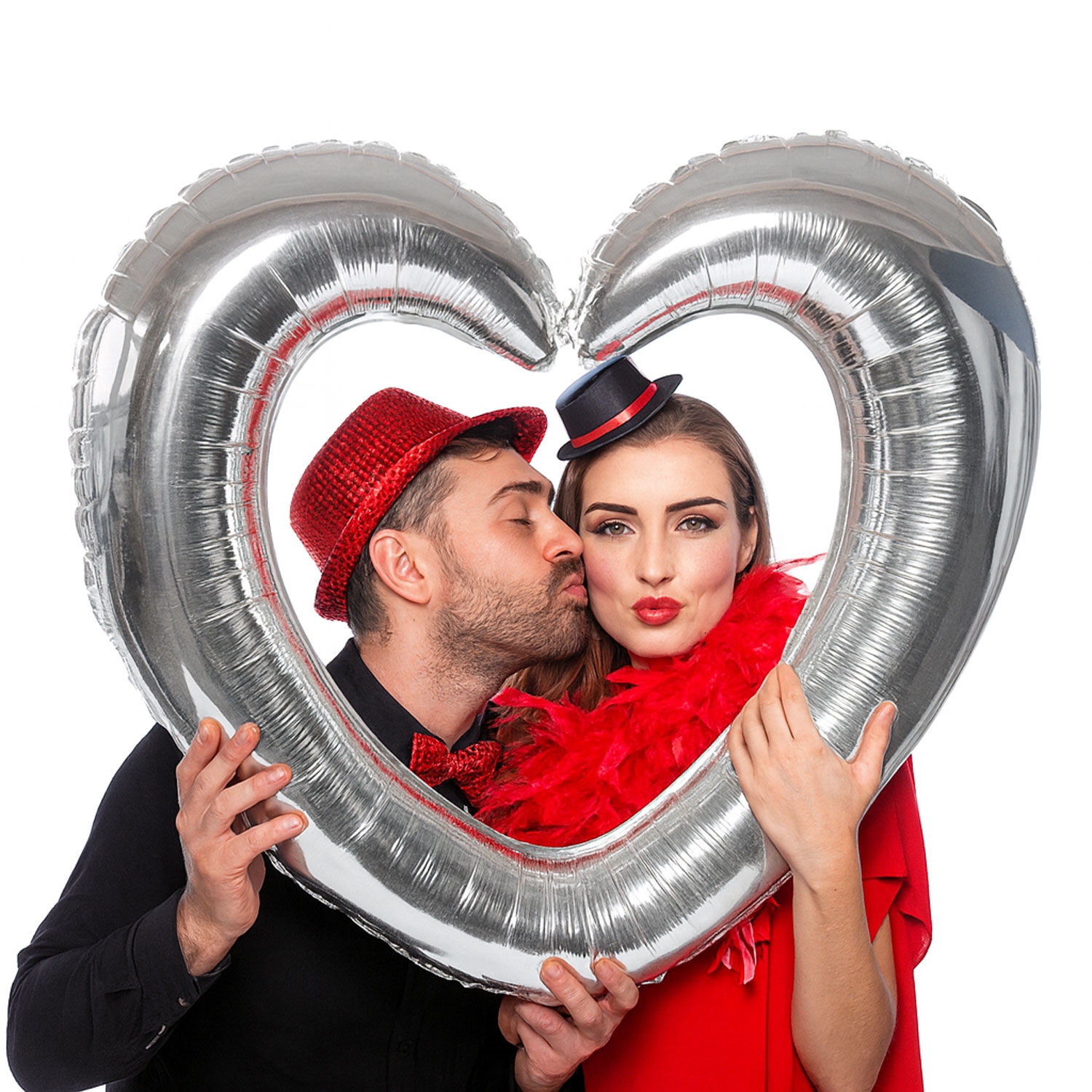 Folieballon Hjerte selfie-ramme sølv 70cm x 80cm festbillederFolieballon Hjerte selfie-ramme sølv 70cm x 80cm festpynt