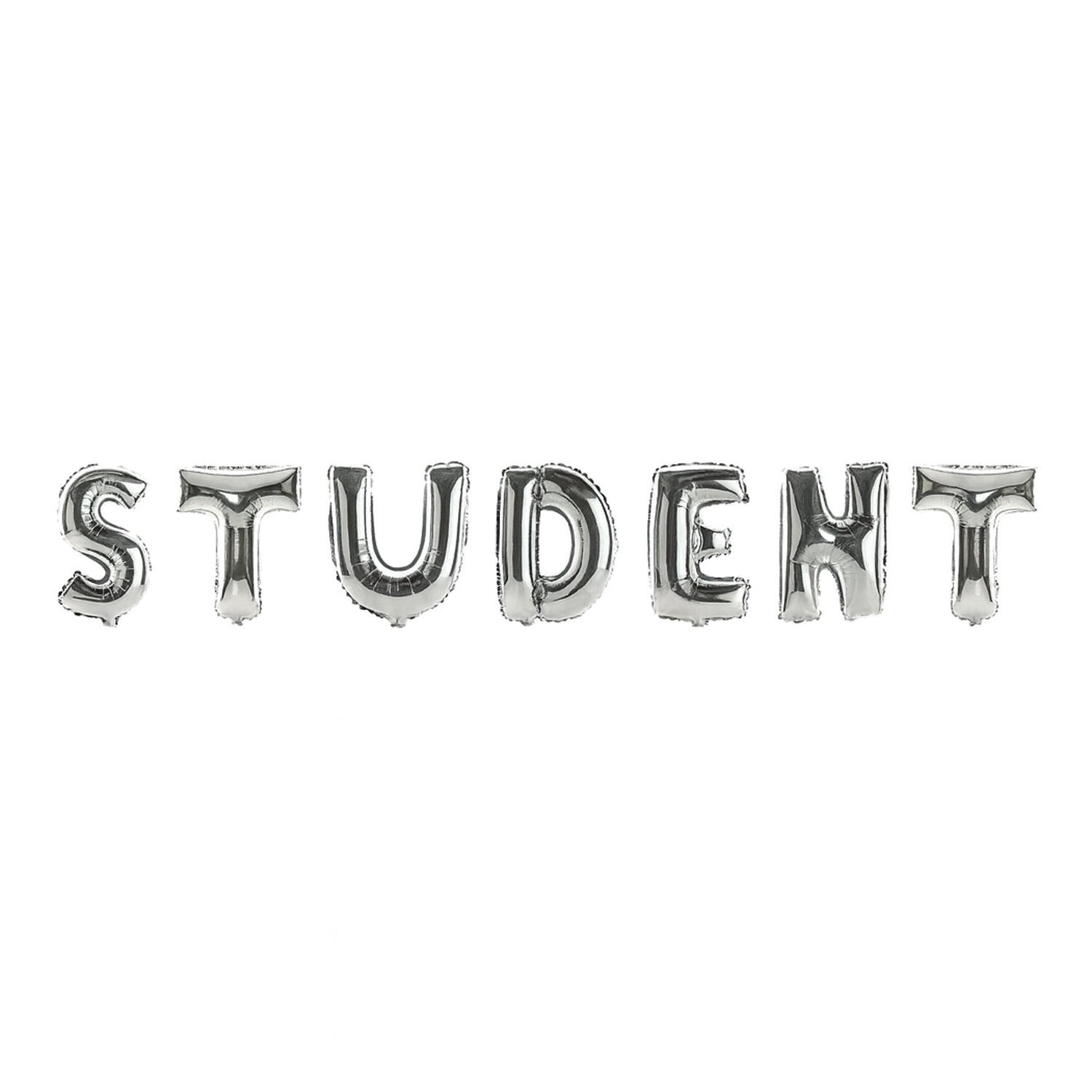 De syv folieballoner, der staver ordet ’student’, kan bruges til alle studenter. Rød, blå, sort, lilla osv. For de er sølvfarvede og passer derfor til alle studenterfejringer. Mix dem med pynt til de forskellige typer studenter, hvis du vil signalere, hvilken farve hue studenten har fået på.