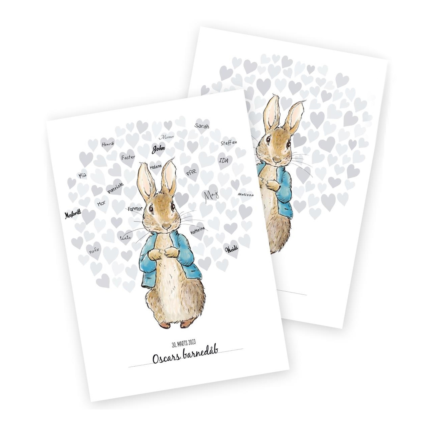 Gæsteplakaten med Peter Kanin er perfekt til en række anledninger såsom barnedåb, babyshower og børnefødselsdage. På plakaten kan gæsterne skrive deres navne og måske endda efterlade en lille hilsen. Det er en fin måde at skabe og bevare minderne på. Plakaten fungerer fremragende i sig selv, men kan også suppleres af en traditionel gæstebog, hvis man ønsker at bevare endnu flere minder.