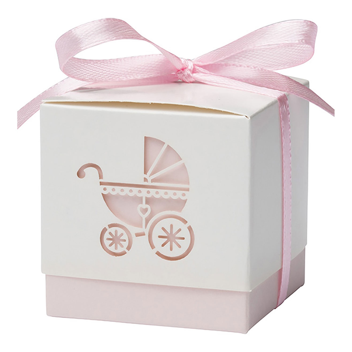 Gaveæsker Barnevogn lyserød, 12 stk. barnedåbspynt