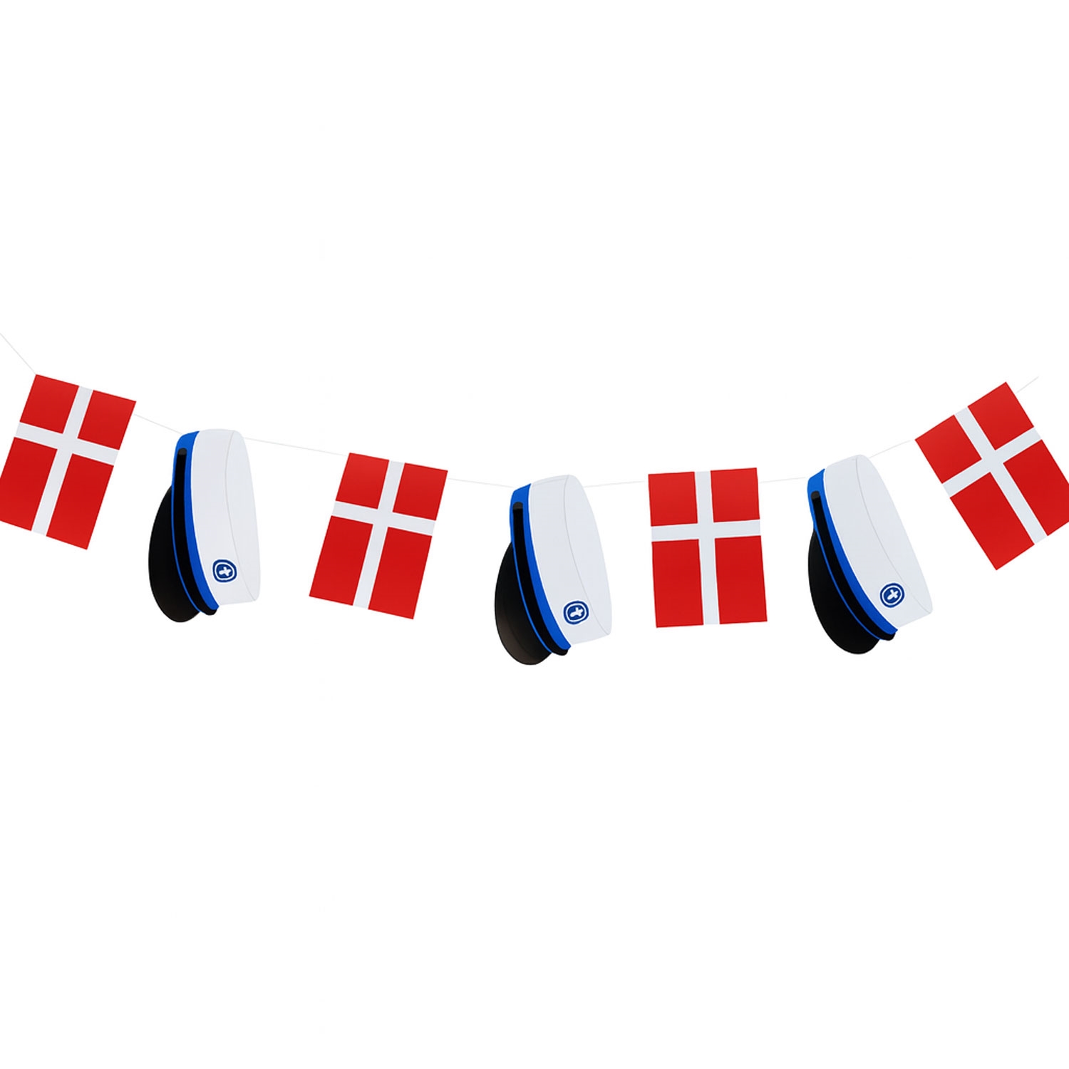 Guirlande Blå studenterhue og flag Dannebrog 16cm x 3m studenterpynt