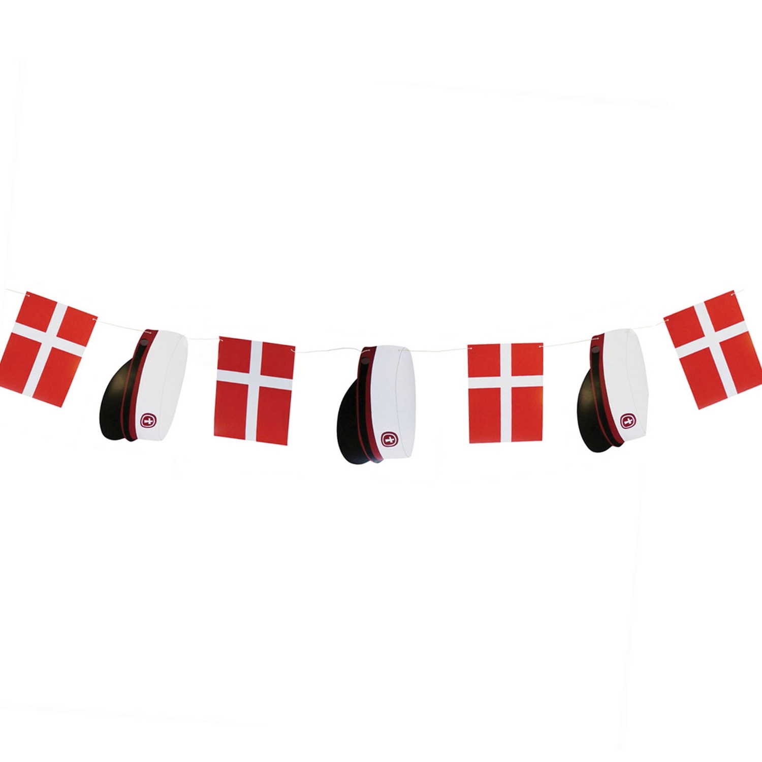Guirlande Rød studenterhue og flag Dannebrog 16cm x 3m
