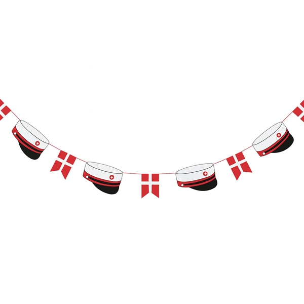 Guirlande Rød studenterhue og flag 3,8m
