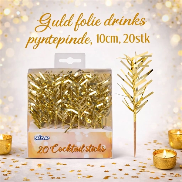 Guld Folie Drinks Pyntepinde – 10 cm (20 stk)