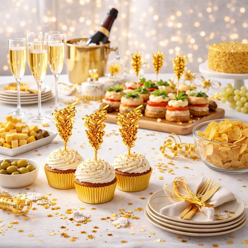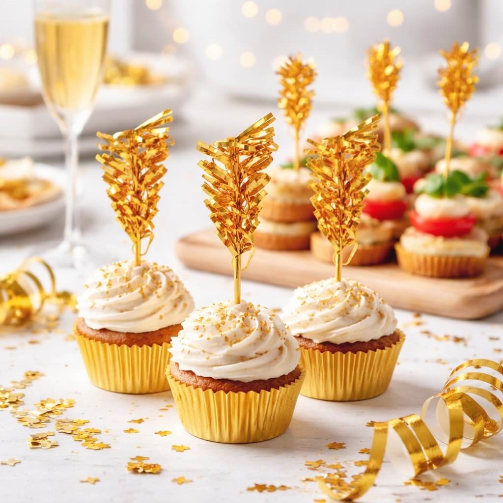 Skab et eksklusivt udtryk på kager, snacks og drinks med disse dekorative guld folie pyntesticks. Ideelle til festlige anretninger og bordpynt.