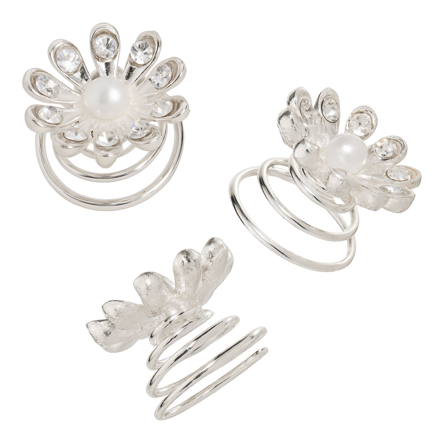Med 10 indfattede rhinsten formet som kronbladene i en åben blomst og en midte med en stor, rund, hvid perle skal denne hårspiral nok vække opsigt og skabe det helt rigtige look til din frisure. Det er super flot at sætte hårspiraler flere steder spredt rundt om i din frisure.