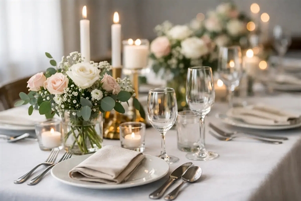 Det er ofte de små ting, der får bordet til at se gennemtænkt ud. En serviet foldet pænt, et silkebånd omkring bestikket eller et lille bordkort kan løfte borddækningen mere, end man tror. Det kræver ikke meget, men det sender et klart signal om, at festen er planlagt med omtanke.