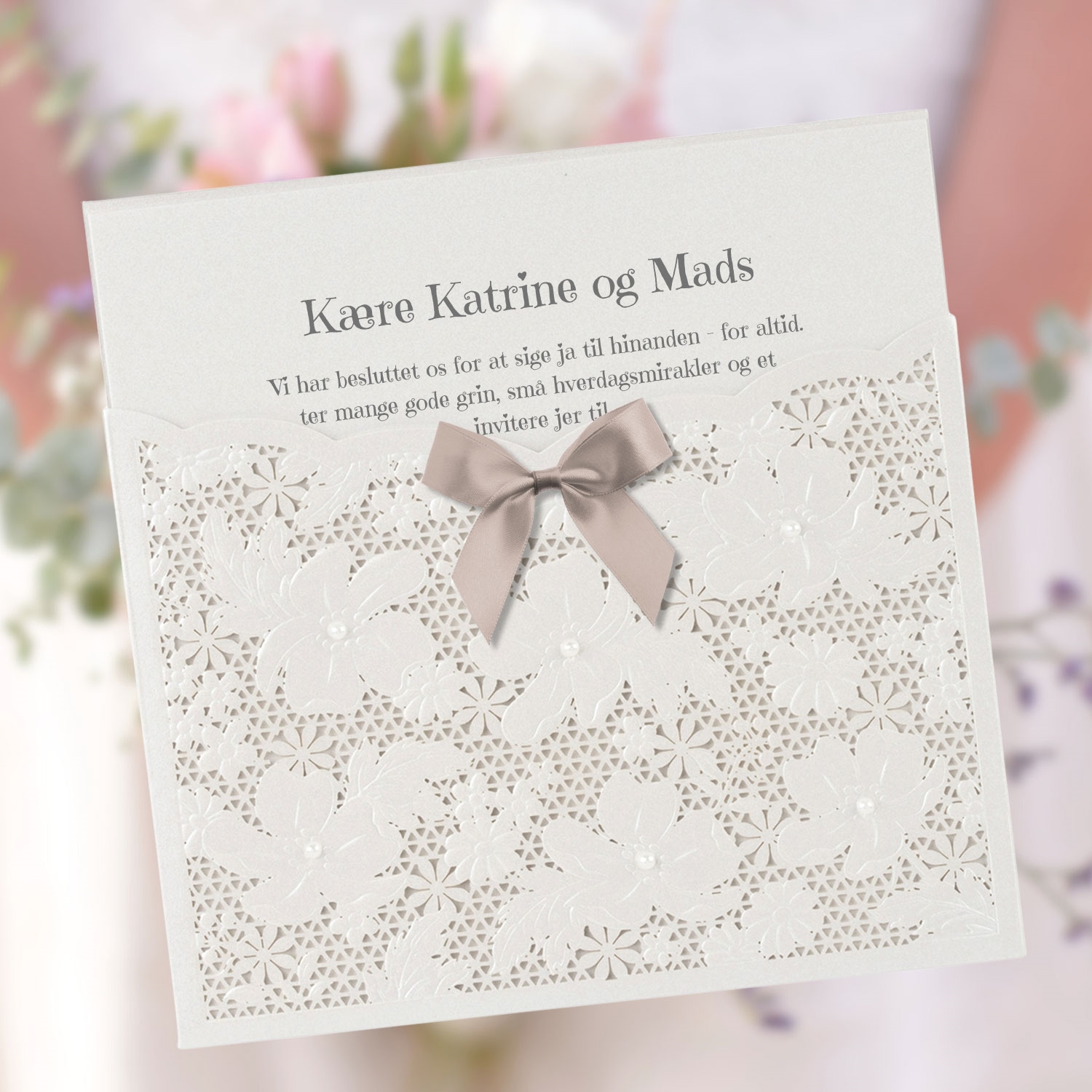 Indbydelse med perledekoration og kuvert perlehvid, 1 sæt