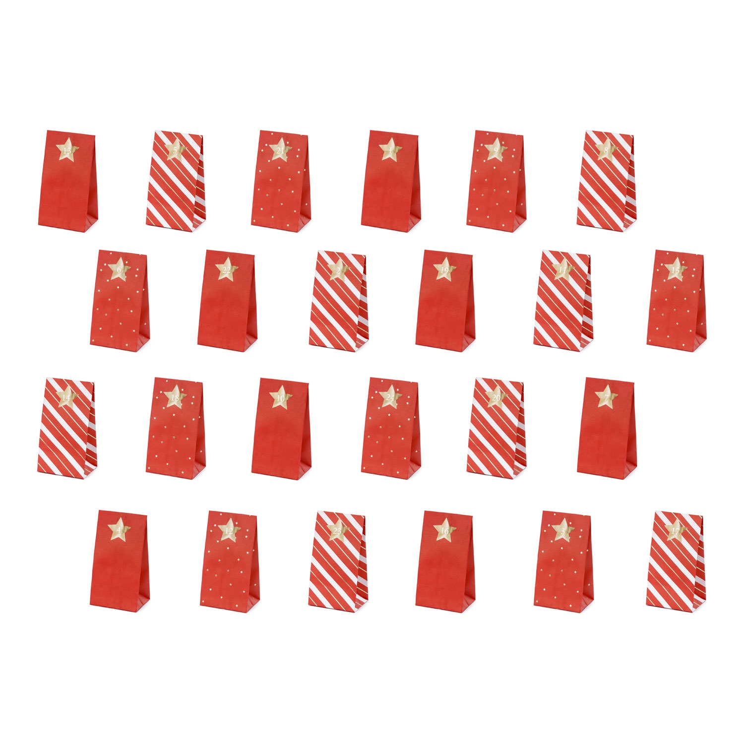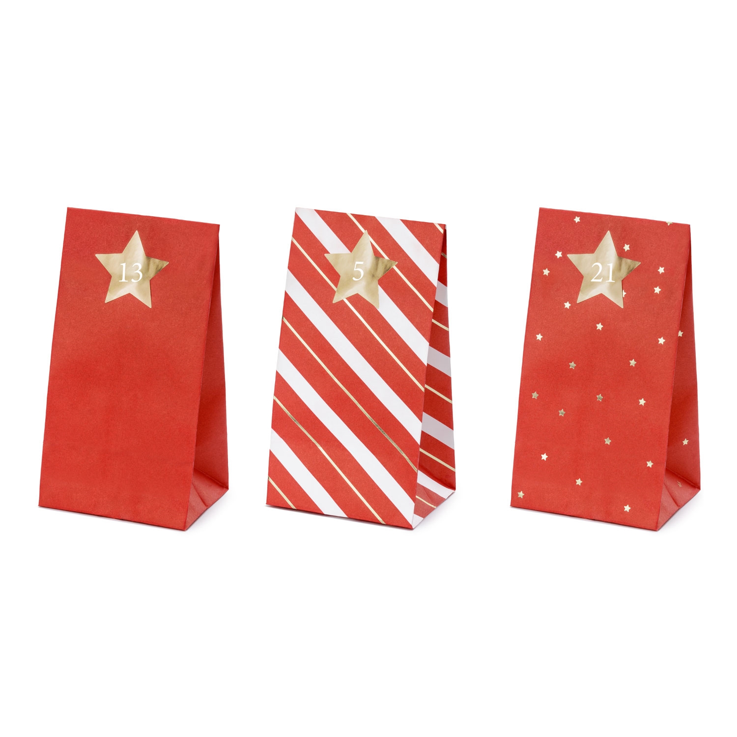 Julekalender Poser hvid/rød/guld, 24 stk.