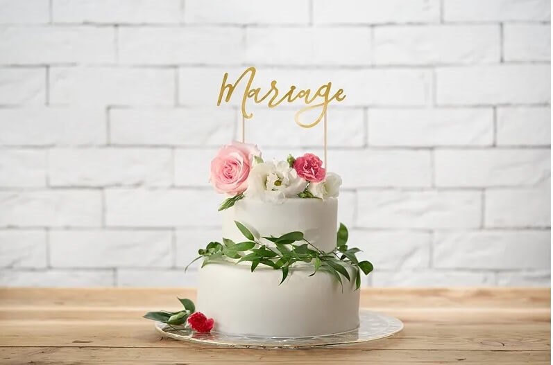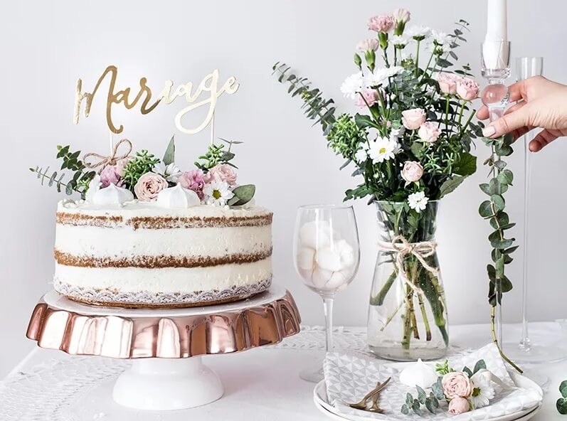 Den bruges som cake topper til at dekorere kager til bryllup og fest, så kagen får et elegant og professionelt udtryk.