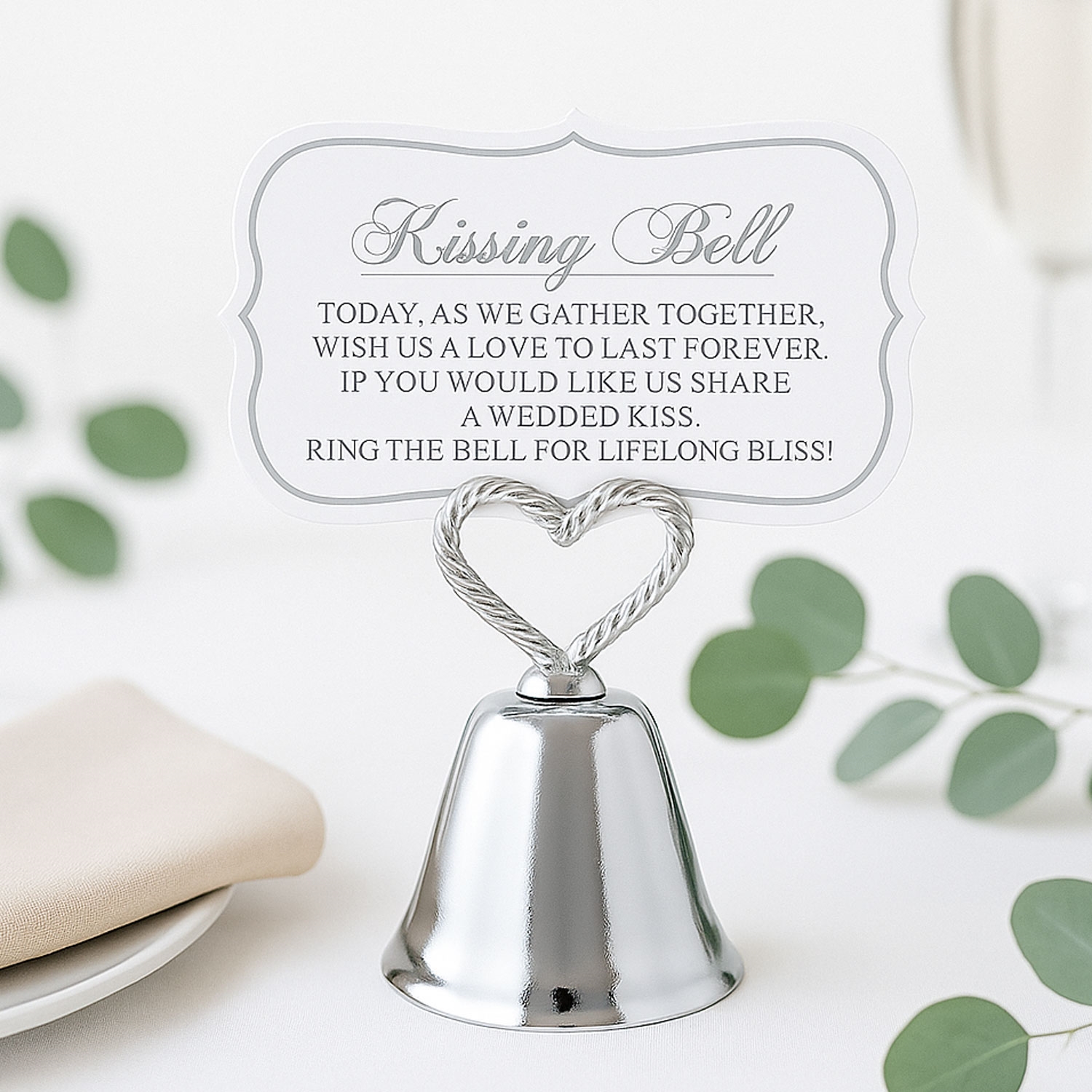 Kysseklokke / bordkortholder incl. kort sølv bryllupKysseklokke / bordkortholder incl. kort sølv bryllupssjovKysseklokke / bordkortholder incl. kort sølv bryllupspynt