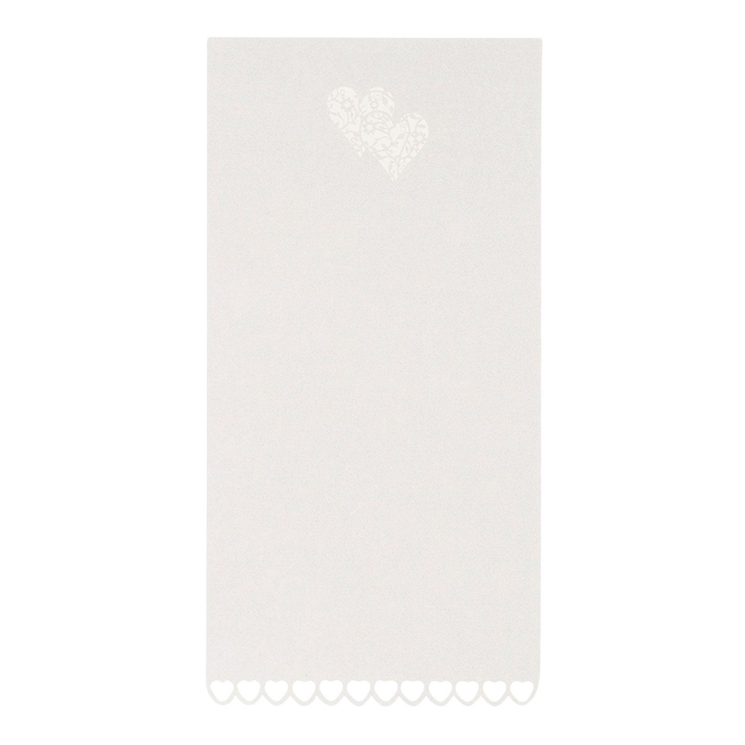 Menukort Hjerter perlehvid 21cm x 10,5cm, 12 stk.