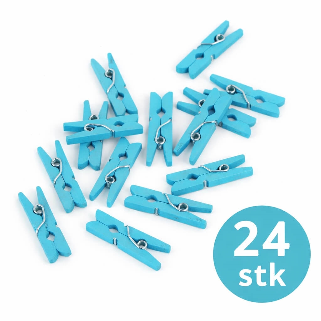 Små Træklemmer Turkis 3,5 cm – 24 stk til Pynt & Dekoration