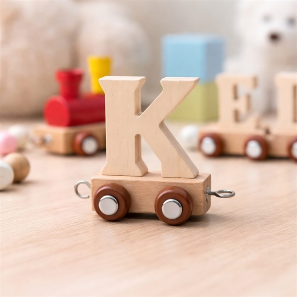 Bogstav K er ideelt, hvis barnets navn begynder med K – eller hvis bogstavet indgår senere i navnet. Sammen med øvrige bogstaver, lokomotiv og vogne kan du skabe et personligt navnetog, der både fungerer som legetøj og som dekorativ detalje på hylden, vindueskarmen eller fødselsdagstoget.