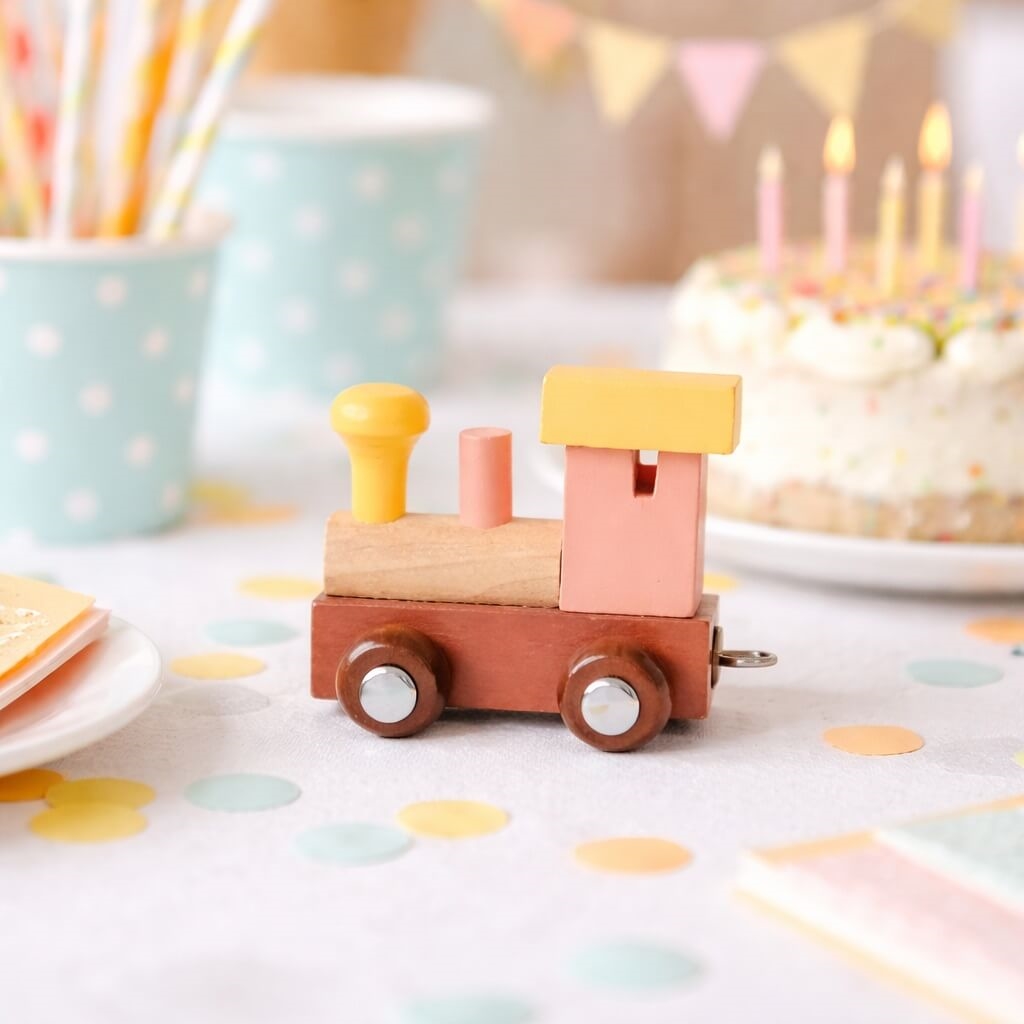 Dette navnetog-lokomotiv er ikke kun legetøj – det er også en personlig indretningsdetalje, som gør barnets navn til en naturlig del af rummet. Brug det sammen med bogstavvogne for at stave barnets navn, eller lad lokomotivet stå alene som en dekorativ figur.