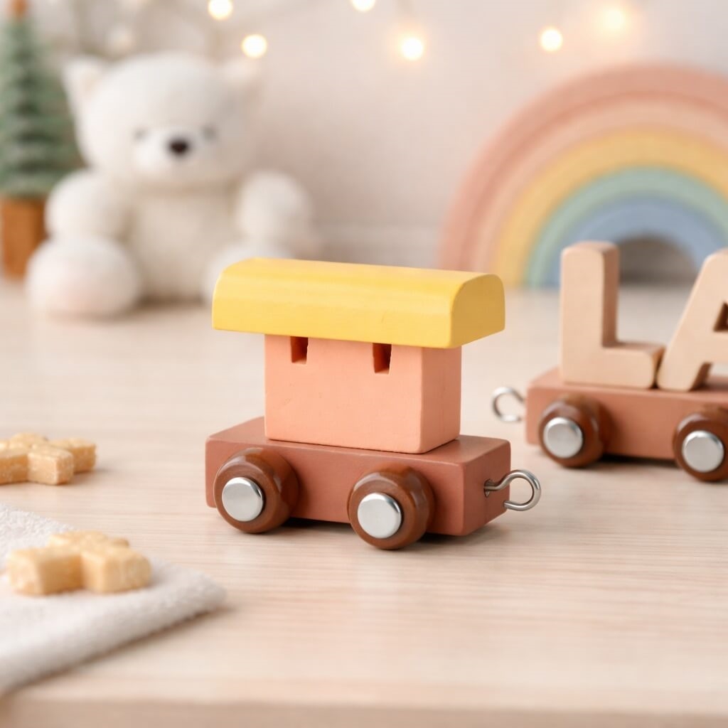 Togvognen er designet til at passe sammen med klassiske navnetog og kan nemt kombineres med bogstavvogne, tal og figurer. Den fungerer perfekt som mellem- eller afslutningsvogn og giver toget et harmonisk og fantasifuldt udtryk.