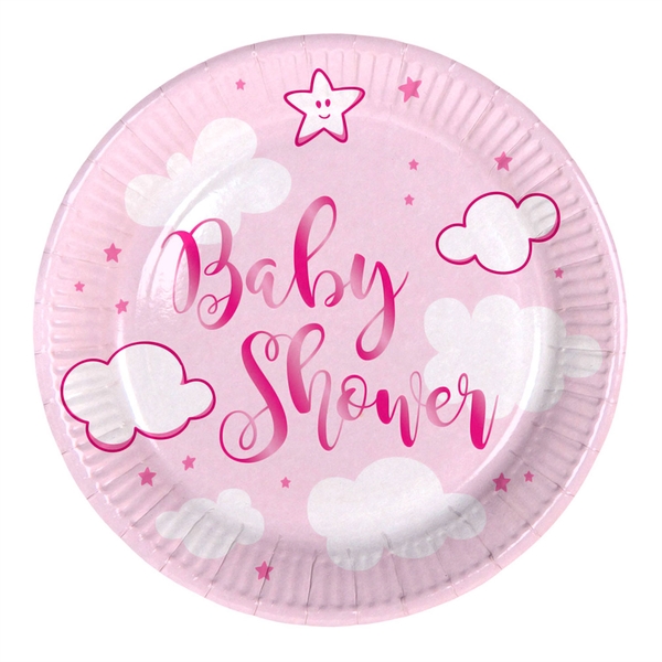 Paptallerkner Baby Shower hvid/lyserød 18cm, 8 stk.