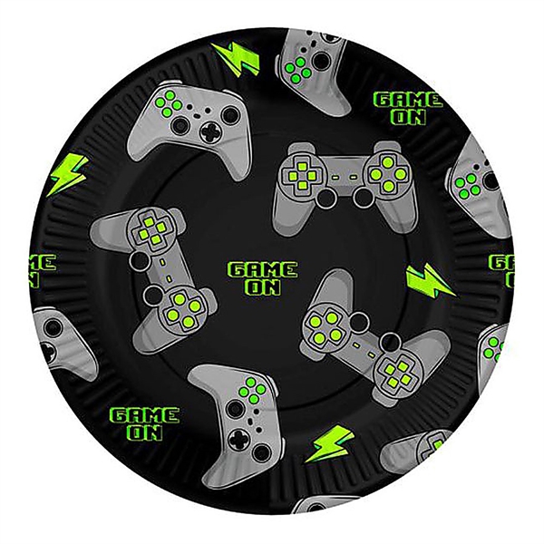 Paptallerkner Gamer limegrøn/grå/sort 23cm, 8 stk.