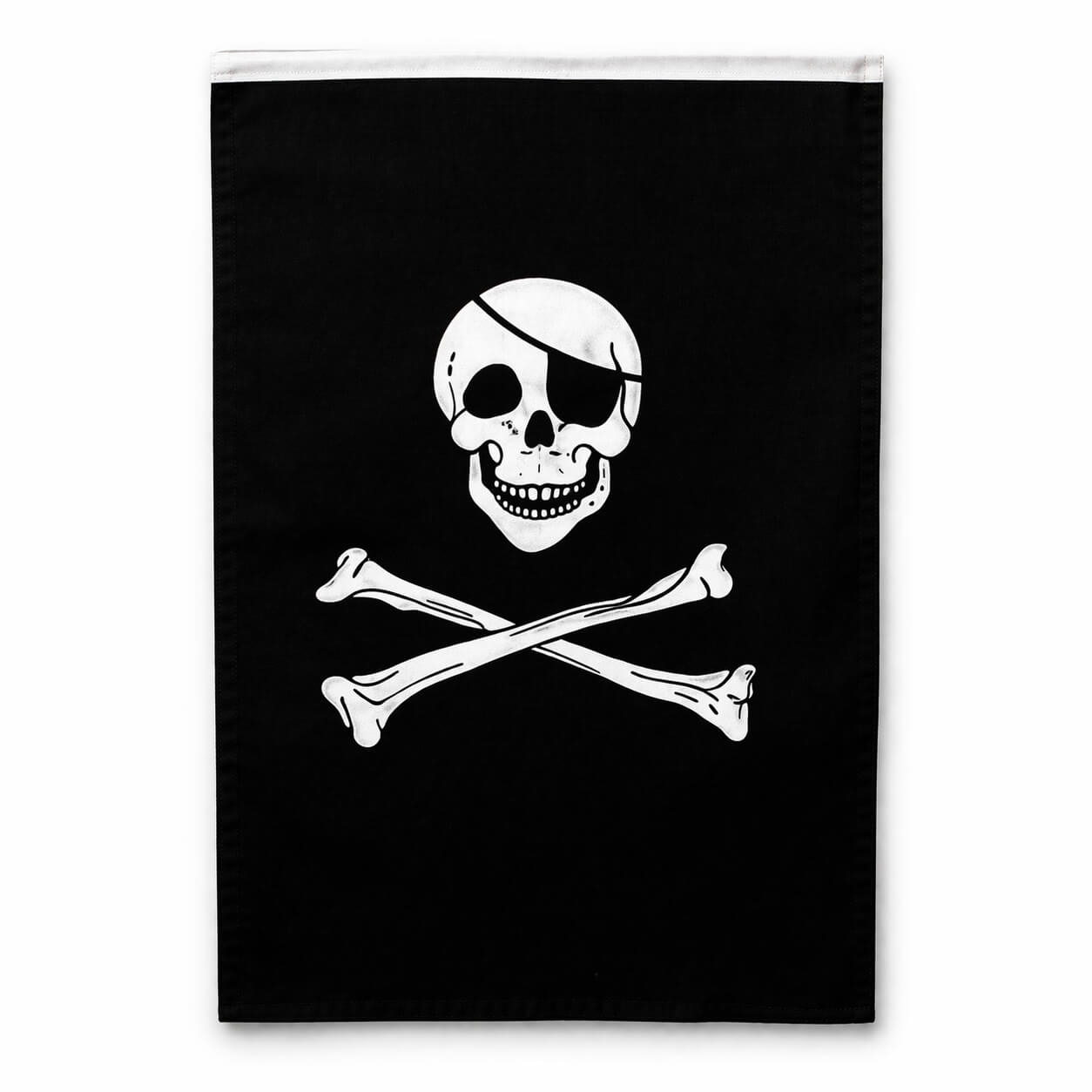 Hæng flaget op ved indgangen, i haven eller bag kagebordet, og lad børnene træde ind i en verden af pirater, skattekister og eventyr.