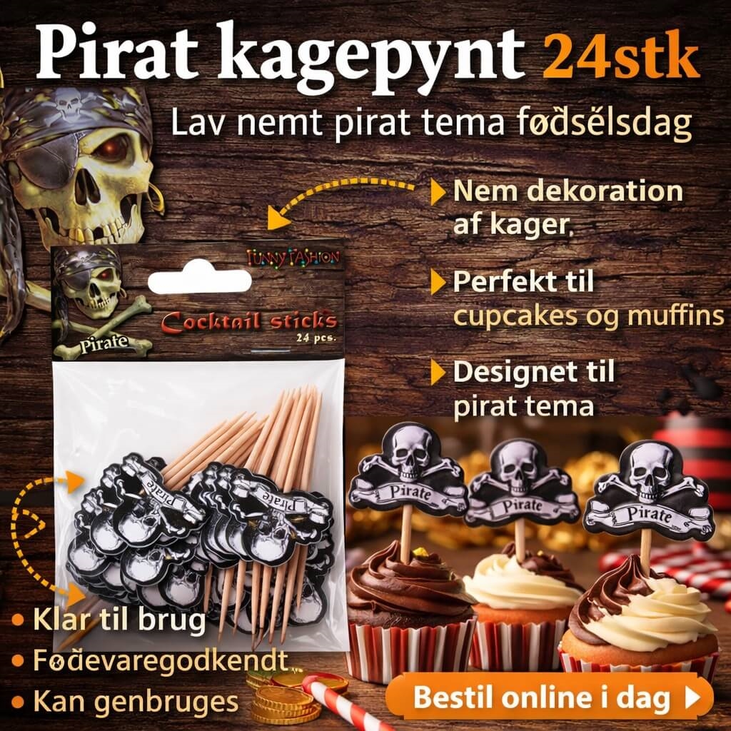 🏴‍☠️ Pirat kagepynt 24 stk – perfekt til børnefødselsdag og piratfest