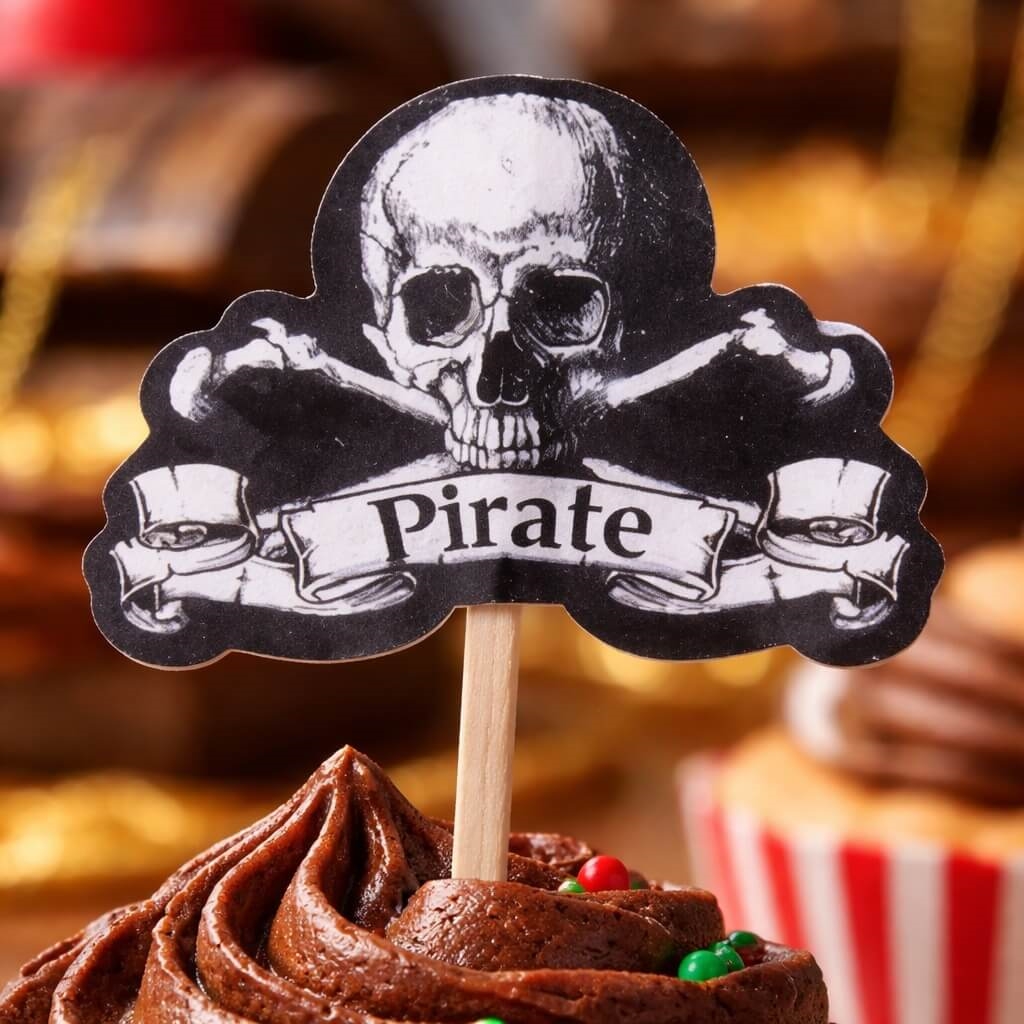 Pirat kagepynt 24 stk – cupcake toppers til børnefødselsdag