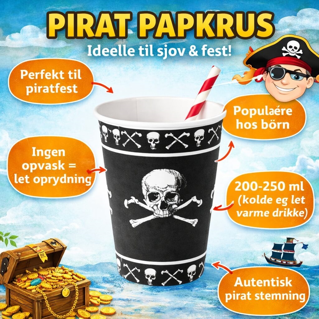 Køb pirat papkrus 8 stk i dag og gør din piratfest klar til eventyr! 🏴‍☠️