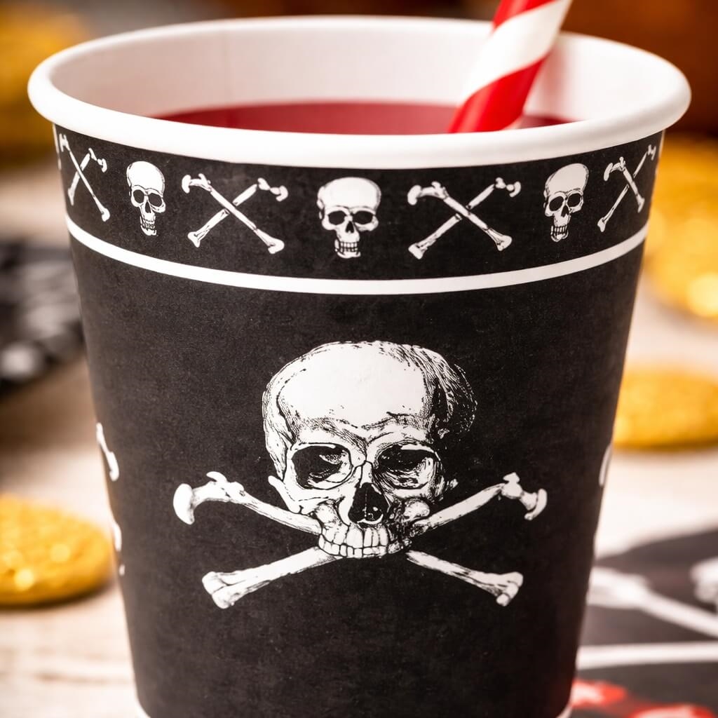 Gør klar til en uforglemmelig børnefødselsdag med disse flotte pirat papkrus (8 stk). Med autentiske piratmotiver og praktisk størrelse er de perfekte til både drikkevarer og snacks – og de fuldender enhver pirat borddækning.