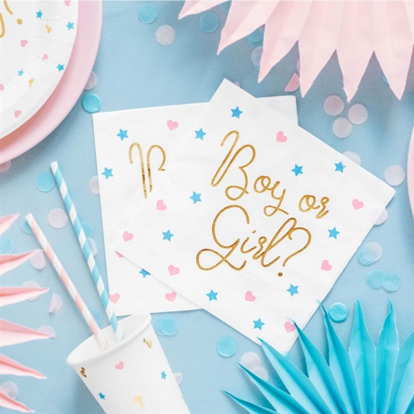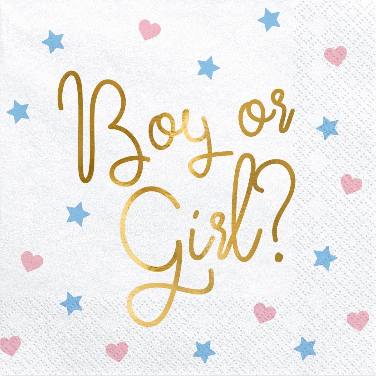 Servietter Boy or Girl 33cm x 33cm, 20 stk. gender revealServietter Boy or Girl 33cm x 33cm, 20 stk. koensafsloeringServietter Boy or Girl 33cm x 33cm, 20 stk. borddækningServietter Boy or Girl 33cm x 33cm, 20 stk. fest